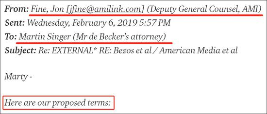 第二封被贝索斯曝光的邮件,由AMI的副法律顾问费恩(Jon Fine)于当地时间2月6日下午5:57发送给辛格,列出了AMI方面的7点提议: