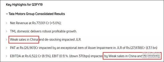 塔塔汽车表示,这主要是因为中国市场业绩低迷,该公司将在下一季度审视捷豹路虎冗余项目成本。