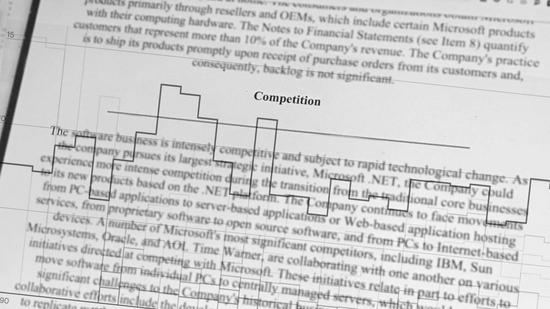 Quartz分析了微软从1989年到2018年的年度财报档案中的“竞争”部分,这是最早可以通过电子方式获得的记录。