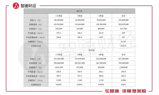付费用户数方面,英语流利说给出的四季度数据为增加约100万人,但据智通财经APP根据此前披露的数据计算,其真实的第四季度付费用户数仅为62万人。据招股书及财报数据,英语流利说2018年上半年付费用户为101.6万人,第三季度财报为87.2万人,2018年全年约为250万,则推测其2018年四季度的付费用户数远不到100万人。