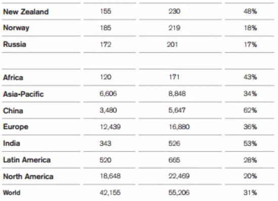 (3) 非洲和印度该项数值在20%-30%间,为全球最低。