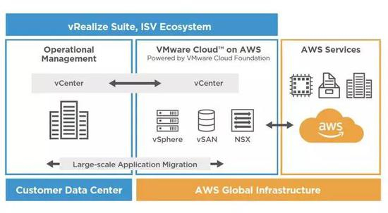 亚马逊通过VMware和AWS Outpost在这里实现了双重曝光。Outpost与AWS公共云完全集成,允许公司为内部数据中心提供服务,这对亚马逊来说是一个重大举措。他们仍然接触过VMware,用户可以在AWS上运行整个VMware堆栈。