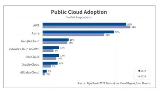 考虑到阿里巴巴在中国的可扩展性,阿里巴巴也将成为值得关注的重要力量。阿里巴巴CEO张勇曾表示,云将成为公司未来的“主要业务 ”,该公司最新季度每股收益较上年同期增长84%,该公司还在增加了欧洲的可用区域。然而,阿里巴巴在构建云业务方面确实面临一些阻力,尤其是贸易紧张局势和华为问题。