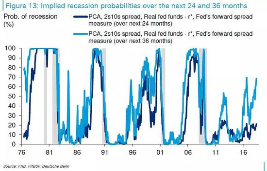 对于未来三年的衰退概率,即期收益率曲线不足以识别,应当密切关注远期曲线。将美联储研究中提到的近期远期利差纳入模型之后,未来三年的衰退概率约为70%。