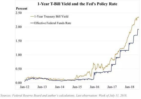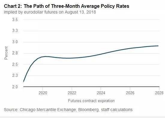 期限溢价的低迷导致了长期利率较低。关于政策利率预期的问题是,市场是否预期经济放缓,以至于美联储需要转而降息?欧洲美元期货市场有助于理解市场预期。事实上,市场正在预计美联储将继续加息直到2020年,并没有迹象表明会在中期转向降息。