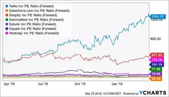 对比其他SaaS股票,可以看到Twilio被高估的趋势。