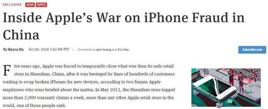 苹果真正开始关注这一问题,源于Apple Store深圳假日广场店的异常数据。作为华南地区的第一家Apple Store,这家零售店在投入运营一年以后,每周处理的保修请求超过了2000件。这一数字是纽约AppleStore第五大道旗舰店的三倍,后者是苹果在全球最繁忙的零售店之一。