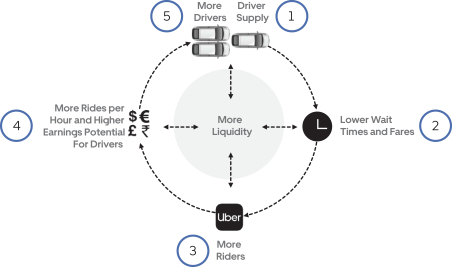 我们拥有庞大、高效、智能的网络,包含数千万司机、消费者、餐厅、货主、承运人和无桩电动自行车和电动滑板车,以及底层数据、技术和共享基础设施。每次行程都会令我们的网络更加智能化。在全球700多座城市中,只需按下一个按钮,我们的网络即可为数百万人提供出行服务,我们希望最终能达到数十亿人。我们拥有庞大的网络规模和流动性,在截至2018年12月31日的季度中,我们共计完成15亿次行程,乘客平均等待5分钟就会有司机前来接送。我们添加到我们网络的每个节点都会增加流动性,我们打算继续增加更多司机、消费者、餐厅、货主、承运商和无桩电动自行车和电动滑板车。我们还希望在我们的网络中添加自动驾驶汽车、无人机和垂直起降飞行器以及其他未来的创新。