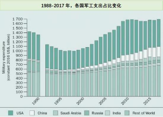资料来源:SIPRIMilitaryExpenditureDatabase,2018年5月