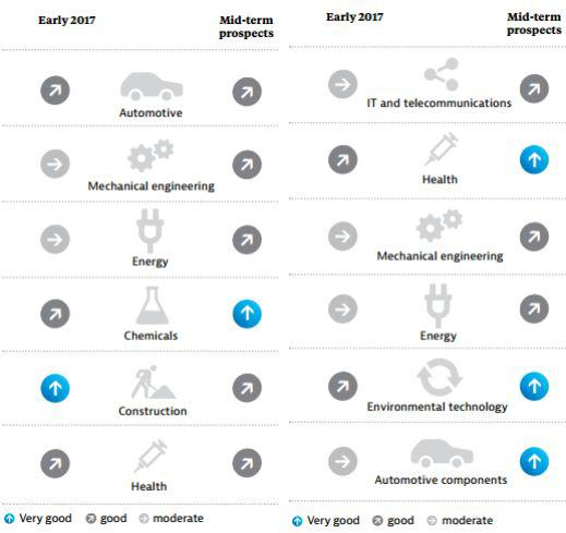 浅灰箭头:一般;深灰箭头:良好;蓝色:优秀。资料来源:GermanyTrade&Invest