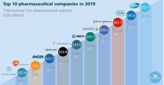 2019年全球排名前10医疗公司(按收入计)