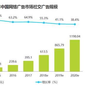 艾瑞咨询数据显示,2017年社交网络广告市场规模达到395.1亿元,增长率为64.9%,预计到2020年将达到近1200亿的规模。(这里指的社交网络广告包括SNS社交网站、传统社区、博客等类型,也包括门户旗下的网络社区及微博、微信等。)