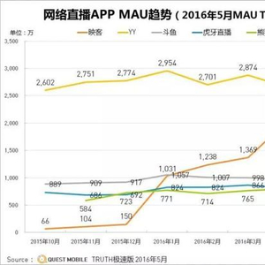 挖人和烧钱抢市场的打法,让斗鱼早期获得游戏直播界领先位置。Questmobile的MAU趋势统计中,从2015年10月-2016年5月,斗鱼MAU基本在900万-1000万之间浮动,在游戏类直播平台位居第一,而虎牙、熊猫TV等的MAU则在500万-900万。