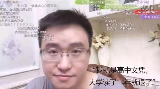 其实,他直播时早亲口承认“大学读了一年就退了”。