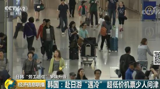 央视财经频道特约记者 刘峥:日本原本是韩国民众出境游的热门目的地,但随着韩日贸易争端的不断加剧,部分旅行社甚至不再出售赴日旅游产品。还有的旅行社下架了赴日本岛根县旅游的包机项目。