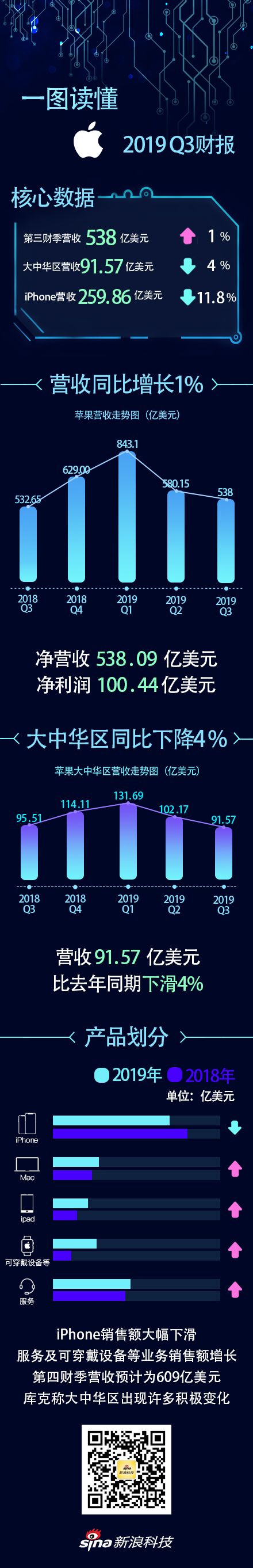一图看懂苹果2019Q3财报:iPhone销售额大幅下滑