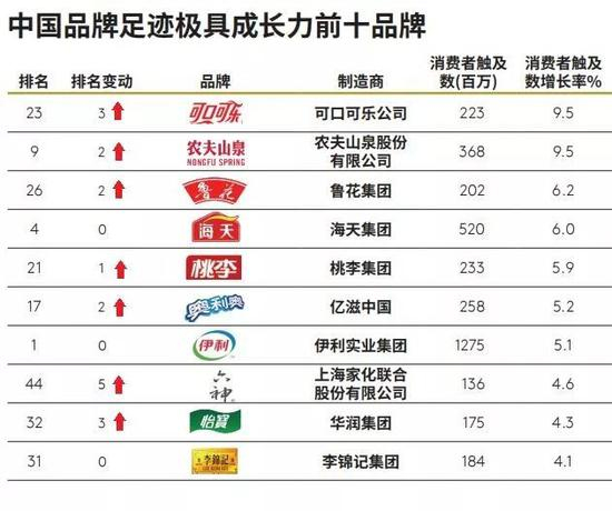 在凯度消费者指数(Kantar Worldpanel)刚刚发布的2019中国品牌足迹报告(2019 Brand Footprint Report)中,已经连续多年被中国品牌占据的增速最快品牌榜上,可口可乐(KO.US)意外成为消费者触及数增长最大的品牌。(2018和2017年增速第一均为农夫山泉,且前十中各只有一个外资品牌:2018年养乐多第6、2017年乐事第10)