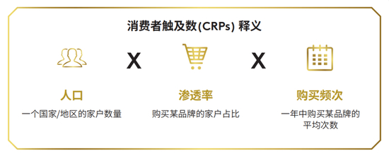 凯度消费者指数的品牌足迹报告是年度报告,该研究涉及五大洲的 49 个国家与地区,覆盖21400个品牌,占全球人口数量的72% ,涵盖全球85%的GDP。本报告的排名依据是基于真实的消费者行为--消费者触及数(Consumer Reach Points)。该指标衡量了全球范围内有多少消费家户购买了某品牌(渗透率)以及多频繁地购买它(购买频次),这真正代表了消费者的选择。