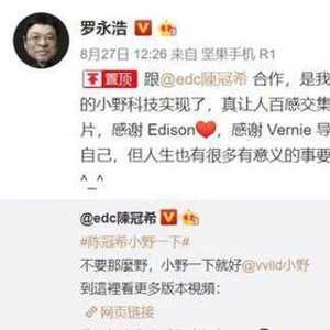 作为小野电子烟的联合创始人,罗永浩来得很及时,30分钟后便转载了这条微博,并将其置顶,宣称陈冠希的加入是自己和老彭(彭锦洲)的心愿,感慨称,“没想到最后在老彭的小野科技实现了,真让人百感交集。”