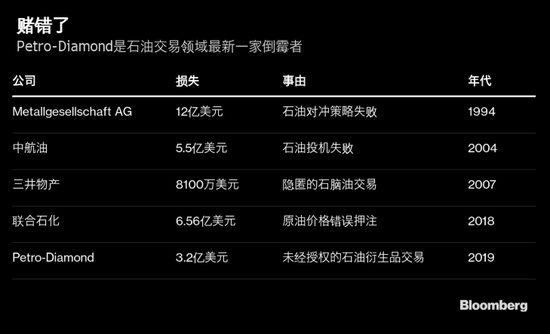 另一家日本贸易公司三井物产于2007年被迫关闭新加坡石油交易部门,此前一名交易员暗中进行石脑油交易而损失8100万美元。这名交易员及其上司被判刑。去年12月,中国石油贸易巨头联合石化亏损约6.56亿美元,两名高管被停职。