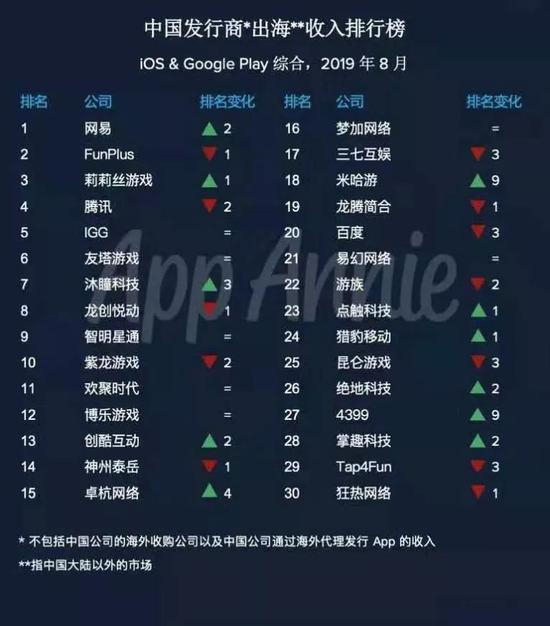 本月,AppAnnie发布了2019年8月中国发行商出海收入排行榜,在这份榜单上,网易再次位列第一。