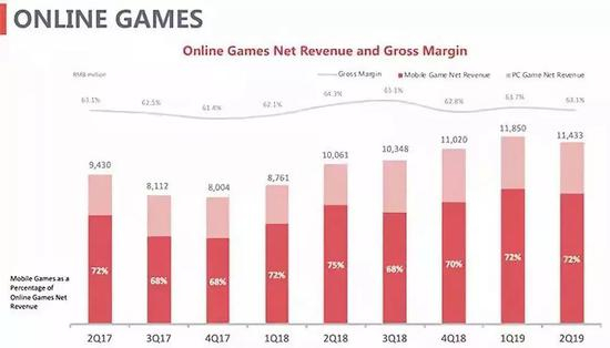 据财报显示,第二季度网易的在线游戏板块共实现营业收入114.3亿元,较上年同期增加13.6%,毛利率则为63.1%,略有下滑。网易表示,这主要是由于来自手机游戏的收入下降以及一些手机游戏的版税和收入分成成本上升。