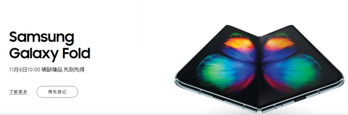 11月4日下午,证券时报·e公司记者最新从三星中国获悉,三星折叠屏手机Galaxy Fold将于11月8日10:00在三星中国官网正式限量开售,目前已开启预先登记。