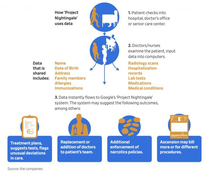 报道显示,该项目是谷歌与美国第二大医疗体系阿森松集团(Ascension)启动了名为夜莺计划(Project Nightingale)。阿森松集团旗下拥有2600家医院、医生办公室等医疗设施,其范围涉及美国21个州的数百万患者。