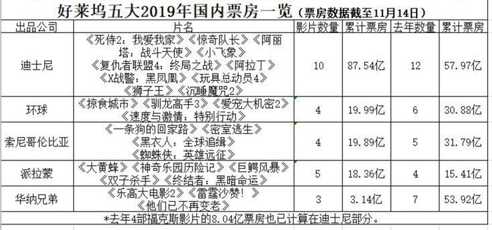 另外,无论是去年还是今年,好莱坞“五大”前五甲的首位都被迪士尼收入囊中,甚至今年迪士尼占据了其中的两个席位,拉大了与其他四家之间的距离。