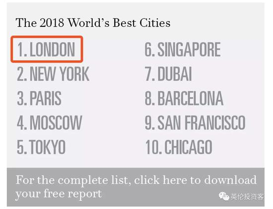 2018年11月12日,加拿大咨询公司Resonance Consultancy发布“全球最佳城市”排名,伦敦同样当选第一。