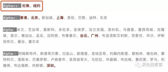 在GaWC的排名中,超一线的Alpha++级城市只有两个——伦敦和纽约,伦敦排在前面。