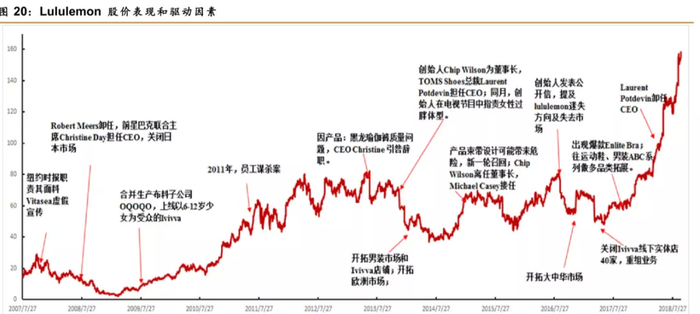 Lululemon股价驱动事件因素。图片来源:西南证券