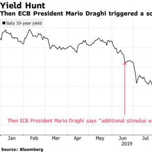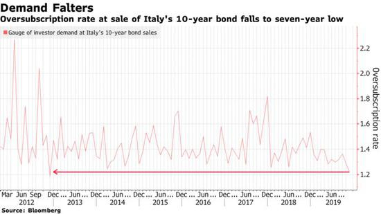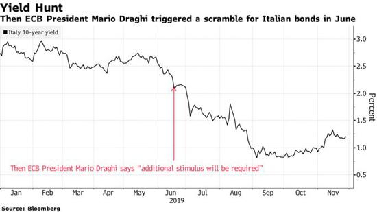当然,在这些风险成为现实之前,欧洲央行11月重启的经济刺激计划(每月购买200亿欧元债券)可能有助于弥补对意大利债券的需求。