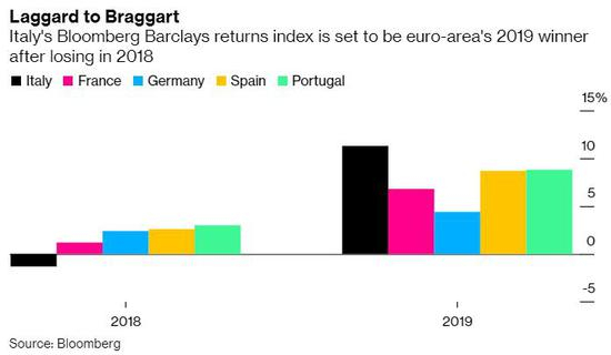 今年意大利国债的命运发生了转变,基准的10年期国债收益率有望出现自2014年以来的最大年度跌幅,甚至有分析师预测,到2020年,意大利国债收益率可能会跌至0%。