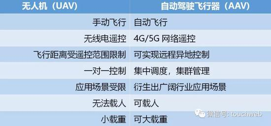 亿航自动驾驶飞行器 (Autonomous Aerial Vehicle, AAV),使用联网化、智能化全新技术,与传统无人机(Unmanned Aerial Vehicle, UAV)有不同。