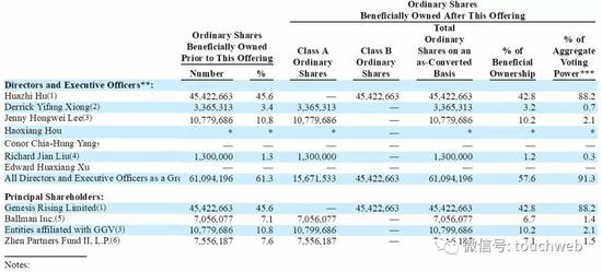 GGV持股为10.2%,拥有2.1%的投票权;真格基金持股7.1%,拥有1.5%的投票权。