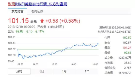 但44%的毛利率略低于是市场预期的44.1%,财报公布后,耐克股价盘后一度跌超2%,截至发稿,耐克跌2.11%,报101.15美元。