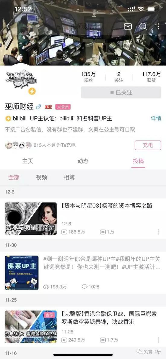 像 up 主“巫师财经”,仅 3 个月,粉丝数已破百万。