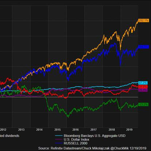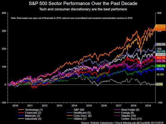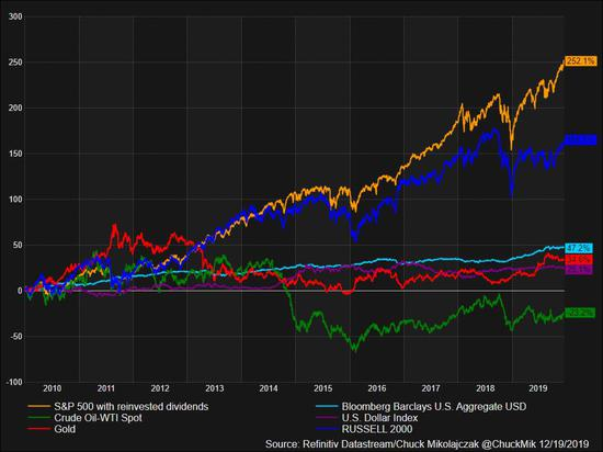 新浪美股讯 北京时间12月24日消息,距离2010年代结束已不到两周时间。标准普尔500指数在过去十年间超越其他主要资产类别和基准商品,涨幅超过250%。