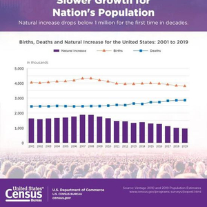 美国联邦人口普查局(U.S. Census Bureau)周一(12月30日)公布的最新调查显示,全美2019年人口增长率下滑至本世纪最低,造成该现象的原因包括出生率降低、死亡率增加、外国移入人口减少等。