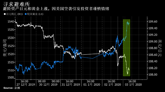 油价飙升,从日元到黄金的一系列避险资产上涨。美国股指期货下跌,亚洲股市逆转涨势。威名赫赫的伊朗少将苏莱曼尼在美国总统特朗普授权的空袭中被杀。通过民兵组织代理人,这位伊朗革命卫队圣城旅指挥官将该国的影响力扩散到了整个中东。伊朗最高领袖哈梅内伊称将进行“严厉报复”等。市场避险行动闻声升级。