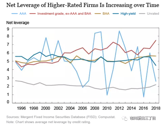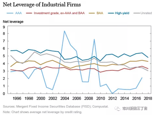 此外,最近的学术研究成果显示,美国的保险公司对被降级到高收益债级别的公司债“一抛了之”。因此,已经因发行人的信用评级展望出现恶化而遭遇价格贬值的公司债,会由于相关的出清压力而承受更大的价格下跌压力。在当前的美国公司债市场中,因BAA级公司债的未到期余额,以及投资级公司债整体的净财务杠杆比率居高不下所导致的大批美国公司债有可能被降级的情况,引发了市场对美国金融稳定性的担忧。