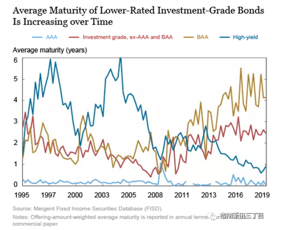 此外,通过下面这张图可以看到,BAA级公司债的平均剩余期限在过去这些年里出现了增加,而AAA级公司债的平均剩余期限则相对稳定。因此,AAA级公司债不但在发行人方面无法与BAA级公司债进行有效对比,BAA级公司债的平均剩余期限也远超AAA级的公司债,这种在平均剩余期限方面的差异近年来愈加明显。