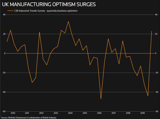 此前,英国工业联合会(Confederation of British Industry)的一项调查显示,制造业信心出现创纪录的跃升。