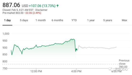 时间来到了2月4日,特斯拉的股价一度突破900美元,市值甚至逼近1700亿美元。收盘后,特斯拉市值跃上了1500亿美元的新台阶。