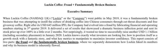 后面的事情就到了现在,大家就都知道了,做空报告,瑞幸回应,股价下跌。