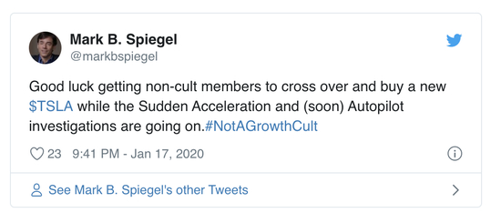 随着时间的推移,在Seeking Alpha网站上做空特斯拉股票的人基本上把他们的对话转移到了Twitter上,这是一个简洁和充满表情包的世界。