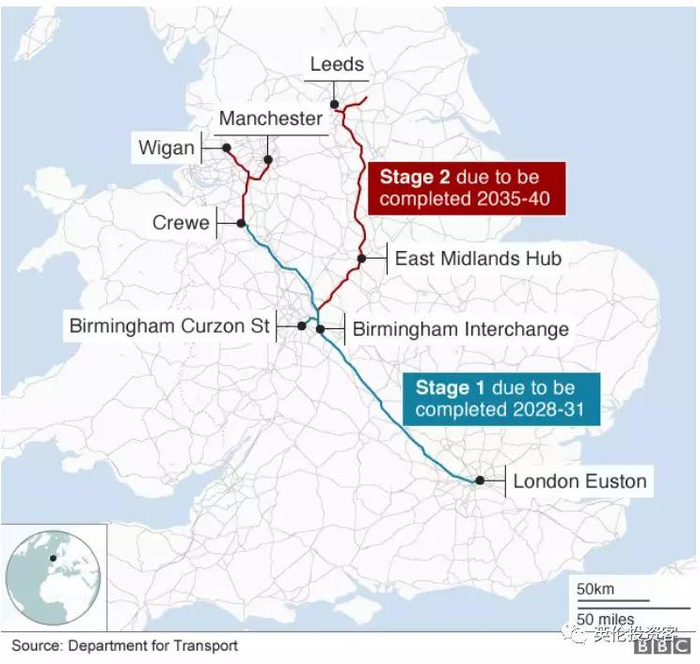 从时间上看,连接伦敦和伯明翰的第一阶段将于2033年通车,整条线路预计于2040年通车。