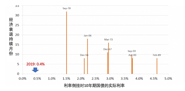 黄郁葱:美国主流机构在危机爆发之前就过于乐观,目前仍是如此。即使没有新冠病毒,这本就将是一次严重的经济危机。一方面,美国在危机前实际利率空前低迷,显示经济泡沫严重而降息救市空间狭小。美联储研究也显示,危机前实际利率越低,危机持续的时间越长。二战后最长的一次是1978年危机,当时10年期国债实际利率是1.5%,经济衰退持续30个月,而本次危机前这一指标仅为0.4%,预示危机将更加严重。情况见下图。
