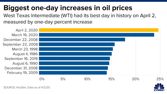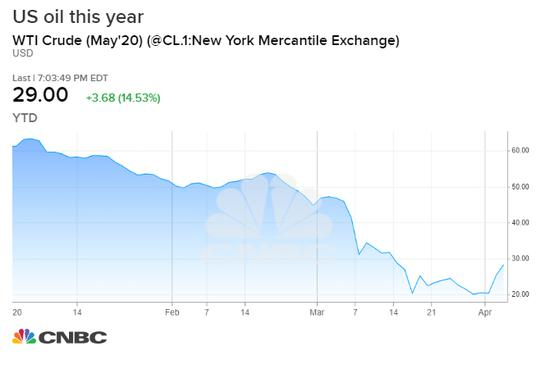 尽管上周油价飙升,但西德克萨斯中质原油(West Texas Intermediate)上个月仍下跌了近40%,原因是冠状病毒(爆发导致需求下降,以及沙特阿拉伯和俄罗斯之间的价格战。